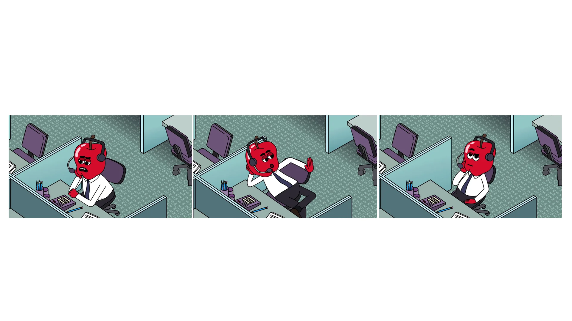 I got to animate the Alien and Apple headed character. The astronaut was animated by Sean Weston.