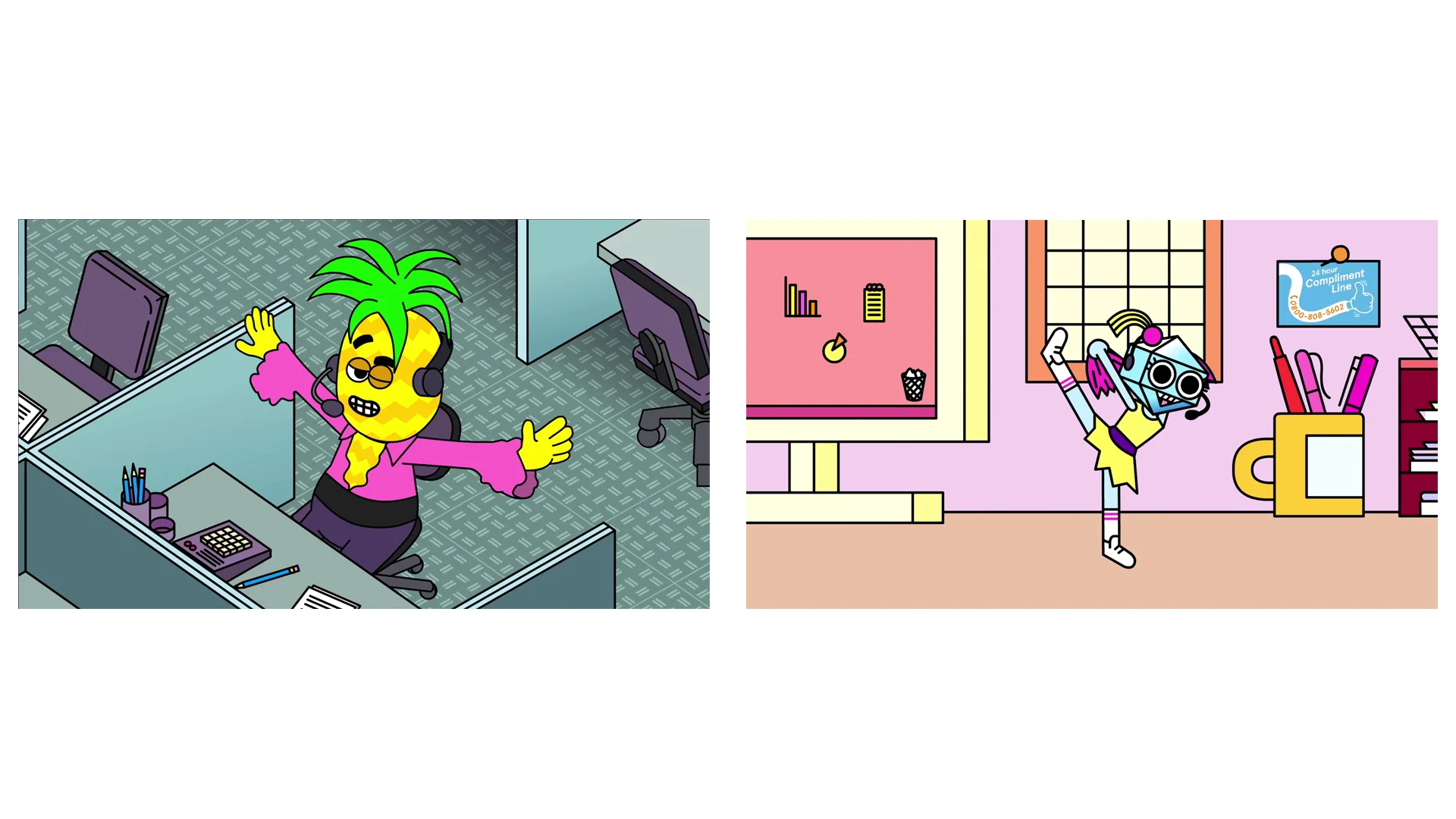 I animated the Robot Cheerleader and pet Lizard in this ad and the Cucumber guy was animated by Sean Weston.