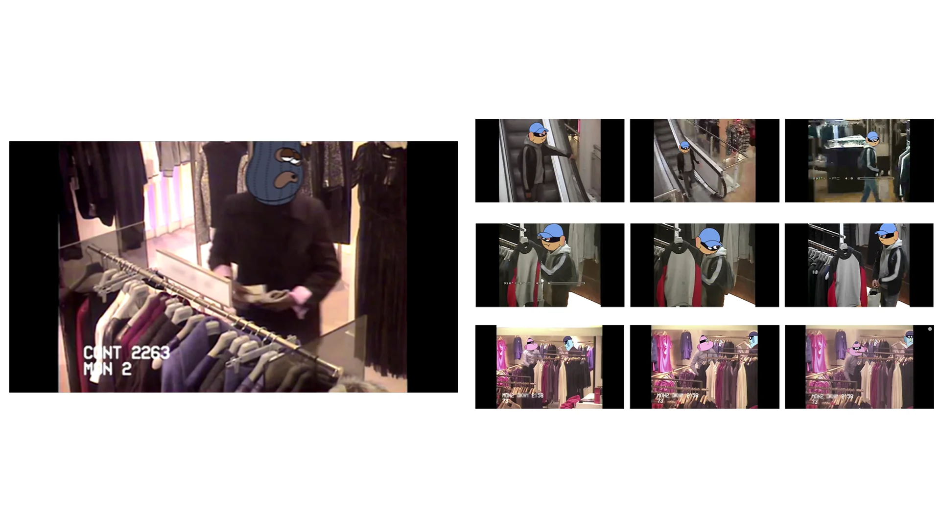 I've included these tests of the blonde lady seen in the advert. For all the characters we tried out multiple expressions to try and convey how shifty and sneaky the shop lifters were. The design changed in the end and in the final advert Blondie was animated by the dynamic duo that are Markus and Tommy Vad Flatten.